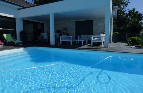 modern villa with heated pool, between mountain and sea view Pyrenees.