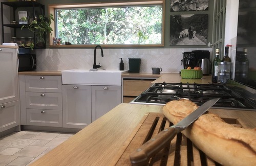 Our house offers relaxation areas with an outdoor living area, a hammock, a covered barbecue and table, an exterior shower, and a garden with vegetables for your dishes.