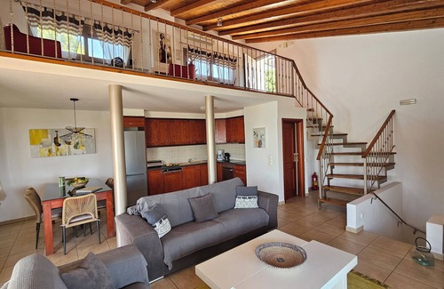 Our Villa Maffeo is a modern villa with incredible panoramic views over the expansive landscape all the way to the sea. It was built in one of the most beautiful locations, just 10 minutes from Rethymnon. The surrounding villages can be reached in a few minutes. The house is approximately 166 sqm and is spread over three levels. The property is approximately 2,000 sqm and is planted with Mediterranean plants.