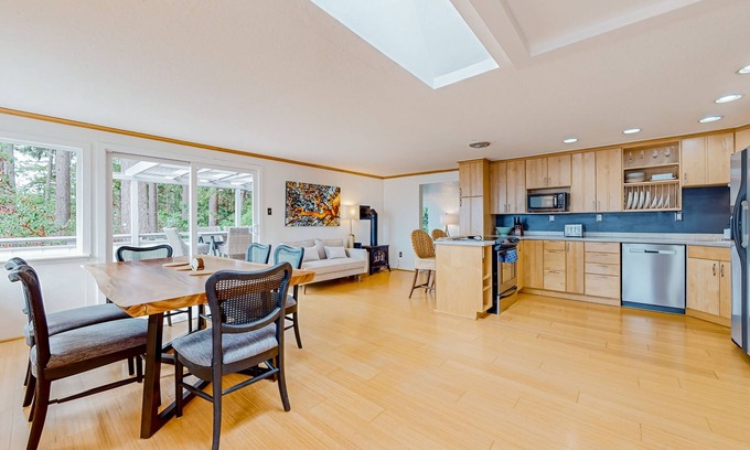 This cherished home is nestled in a waterfront, garden neighborhood, providing guests with easy access to both Downtown Port Townsend, Olympic National Park, and additional outdoor hotspots. Quiet and well-updated, this lovely home truly has it all! Spend precious moments with the people who mean the most to you while cooking in the open kitchen, streaming your favorite shows in the plush living room, and dining al fresco on the expansive, water-view deck.