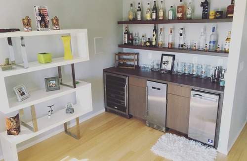 - Fully stocked kitchen with all tools, gadgets and utensils to make the most gourmet of meals (including mixer, blender, Kurig machine, and burr coffee grinder + espresso machine)