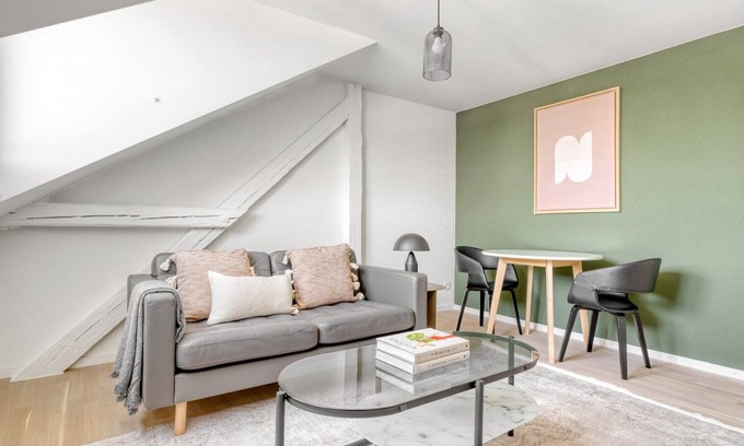 Thoughtfully designed with bespoke finishes, modern furnishings, and a fully equipped kitchen, you’ll enjoy that “I’m home” feeling with this Blueground apartment. Whether you’re lounging in your spacious living room streaming the latest and greatest entertainment on the smart TV or premium wireless speaker, or getting some well-earned rest on the superior quality mattress with luxury linens, you’ll fall in love with everything this Hottingen apartment has to offer.