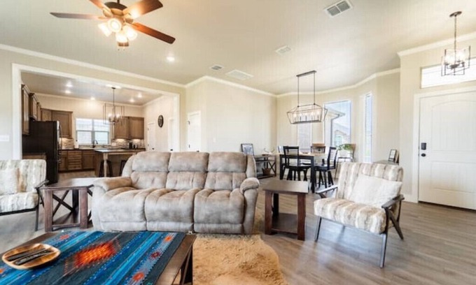 Forget your worries in this spacious and serene space! A very quiet, family-friendly neighborhood in a brand new area of construction in Lubbock, Texas. This new home features 3 bedrooms and 2 full bathrooms. This location is optimal, allowing you to reach any destination in Lubbock within just a few short minutes. Did we mention you only have to throw away the kitchen trash upon check-out? Leave the major cleaning to us!