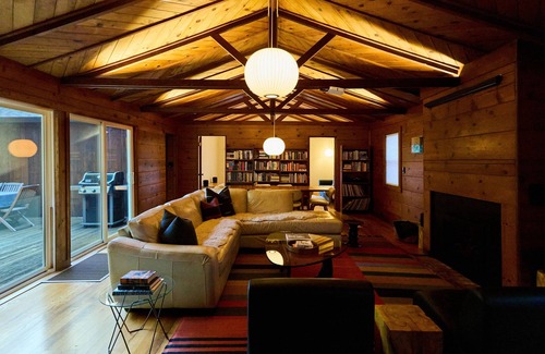 Find the elegance of an urban retreat in a serene forest setting when you book this gorgeous Russian River home, ideally situated in a grove of redwoods. You'll be walking distance from Sunset Beach, which is only one mile away. Mixing the comforts of a rustic cabin with stylish mid-century furnishings, this getaway truly stands out in the area. This beautiful space is full of high-end finishes, from the projector TV to the sliding glass doors that open to the deck and the surrounding trees. In this tranquil setting located at the end of a dead-end street, you'll have a lovely and private outdoor space where you can grill, turn on the fire pit, relax under the stars. Inside, you can cozy up with a book by the gas fireplace or play your favorite board game with loved ones. Not to mention, the sectional leather sofa will be calling your name to kick back for a movie night. Have a little work to do while you're here? There is a detached office with a sofa and desk, and the free WiFi will make it easy for remote workers and students to perform some online research for those last-minute projects and a bonus retreat room with yoga mats, a lounging chaise and more games with a lovely view that opens to a semi private deck. Let this home welcome you back from days spent wine tasting, swimming, or kayaking on the river.