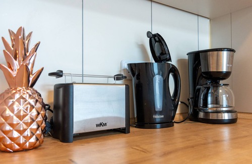 The kitchen is equipped with an oven, a stovetop, and a refrigerator, as well as a coffee maker, an electric kettle, and an ice maker. Enjoy the WiFi and TV. Bathroom amenities include a hair dryer, towels, and toilet paper. And there's access to laundry facilities, so you can even pack a bit lighter. Other amenities at this 4-bedroom, 2-bathroom rental include bed sheets, an ironing board, and heating.