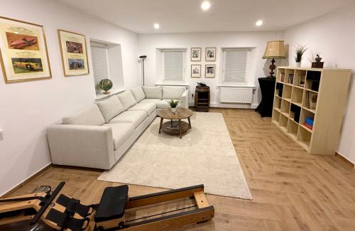 Featuring inner courtyard views, Modernes Bauernhaus - 3 Schlafzimmer, Küche, Bad, Wohnzimmer, Kaminofen, WaterRower in Neuenmarkt provides accommodations and a garden. This recently renovated apartment is located 17 miles from Bayreuth Central Station and 18 miles from Oberfrankenhalle Bayreuth. There's an outdoor fireplace and guests can access free Wifi and free private parking. The apartment provides guests with a terrace, garden views, a seating area, a flat-screen TV, a fully equipped kitchen with a dishwasher and an oven, and a private bathroom with shower and bathrobes. A microwave, a fridge, and stovetop are also available, as well as a coffee machine and a kettle. At the apartment complex, every unit is equipped with bed linen and towels. For guests with children, Modernes Bauernhaus - 3 Schlafzimmer, Küche, Bad, Wohnzimmer, Kaminofen, WaterRower features a baby safety gate and a children's playground. Guests at the accommodation can enjoy table tennis on-site, or hiking in the surrounding area. Bayreuth New Palace is 19 miles from Modernes Bauernhaus - 3 Schlafzimmer, Küche, Bad, Wohnzimmer, Kaminofen, WaterRower, while Bayreuth Festival Theater is 16 miles away. Nurnberg Airport is 66 miles from the property, and the property offers a paid airport shuttle service.