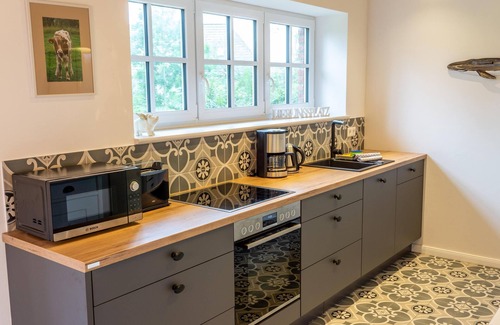 Modernes Reet Gedecktes Ferienhaus für 4 in der Hafenstadt Tönning is located in Groß Olversum. Modernes Reet Gedecktes Ferienhaus für 4 in der Hafenstadt Tönning provides accommodation, featuring Balcony/Terrace, Fireplace/Heating, Entertainment, among other amenities. This House features Balcony/Terrace, Fireplace/Heating, Entertainment, to make your stay a comfortable one.