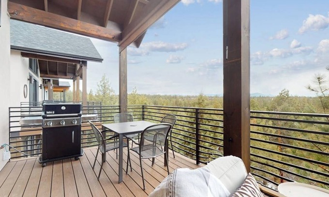 1. VIEWS: Amazing views from our 2 decks (one on each level)! Beyond the treetops, you can see the view of the Cascade Range including Mt. Bachelor and the Three Sisters. You can also enjoy this view from the comfort of the living room and one of the downstairs bedrooms.