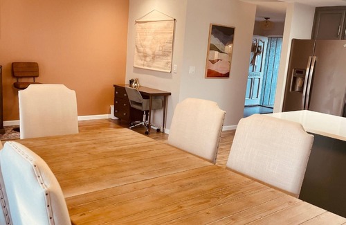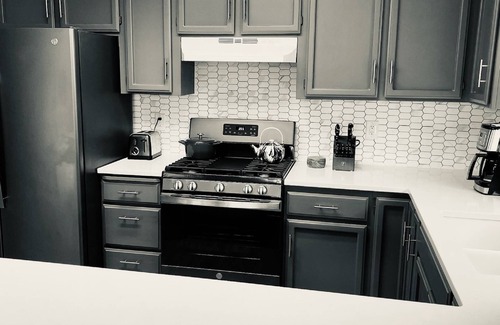 Kick back and relax in this calm, stylish space. Five minutes or less to every amenity you desire in town. Well appointed luxury professionally designed for your enjoyment. 2 car garage with opener, side area to securely store your boat or trailer. Quiet neighborhood/not a great place for a gathering. It is peaceful and quiet with five star furnishings. All interior furnishings, beds, linens and finishes are new.