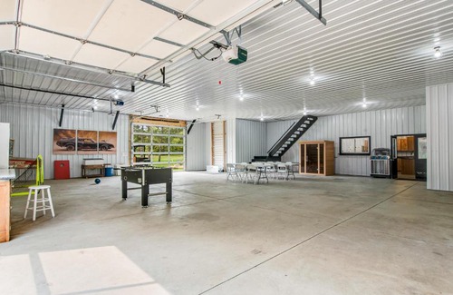 - Renovated barn retreat with firepit, grill, sauna, foosball, kayaks & movie room