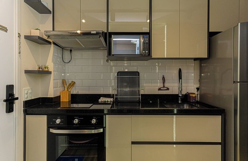 Nestled in São Paulo, this 1-bedroom, 1-bathroom apartment brings it all within your reach. Fans of nature and the outdoors will love being 3 minutes by car from Ibirapuera Park and 1 minutes from Shopping Ibirapuera. Make short work of the 6-minute drive to Shopping Metro Santa Cruz or the 5-minute drive to Avenida Engenheiro Luís Carlos Berrini. Check out other neighborhoods and see more of São Paulo by hopping on a metro at either Eucaliptos Subway Station, a short 4-minute walk away, or Moema Station, 14 minutes away.