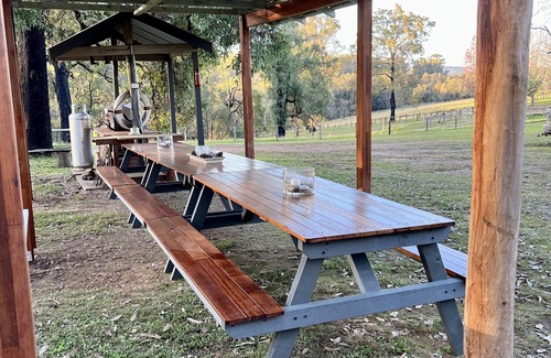 The Mogendoura cottages are three self-catered, top quality, brick cottages set well away from Mogendoura farmhouse with a large outdoor undercover dining BBQ area, perfect for larger groups. Children's playground, count house, outdoor games, fire pit and cooking out. Each has two bedrooms, kitchen lounge/dining room, bathroom, and laundry/toilet and can comfortably accommodate six. Individually, each cottage is ideal for families or a group of friends. Otherwise, as they are within proximity to each other, this is perfect for family groups or larger groups of friends to get together whilst also providing private accommodation. For additional ambiance each cottage has a slow combustion fire for those chilly winter evenings.