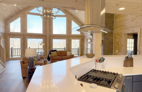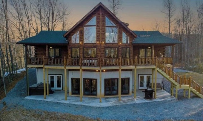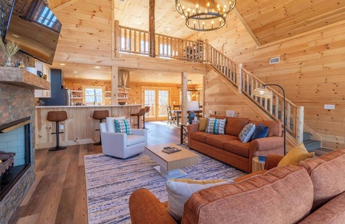 Escape to the Moksha Retreat, a pet-friendly* log cabin in Black Mountain offering rustic luxury. With stunning mountain views from every room, the cabin is 15 minutes from downtown Black Mountain, and 25-30 mins to Asheville, Lake Tomahawk, and other local attractions. Enjoy spacious bedrooms with king beds, ensuite bathrooms and a fully-stocked kitchen. Onsite entertainment options include a 120" movie screen, yoga nook, outdoor firepit, pool table, board games, & hot tub.