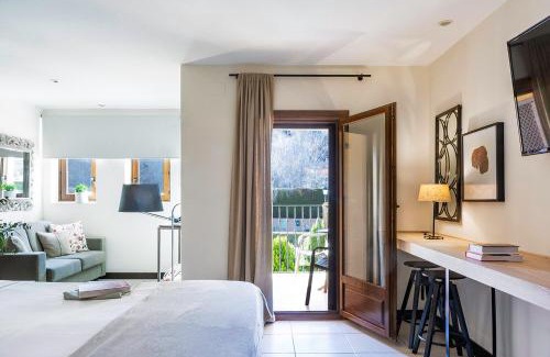 Molino de Alcuneza Hotel Spa is a restored 15th-century flour mill, set next to the River Henares. This boutique hotel offers an outdoor swimming pool, spa and attractive gardens. Each room at the Molino is bright and cozy, with whitewashed walls and characteristic wooden furniture. Rooms include a 22-inch LCD TV and a pillow menu. The family-run Molino de Alcuneza is 3.1 mi from the Medieval town of Sigüenza, and just an hour’s drive from Madrid. Other nearby historic towns include Palazuelos and Medinaceli. The Molino’s restaurant specializes in modern regional cuisine, using the finest local produce. It opens daily for breakfast and dinner. The hotel also offers a spacious lounge, with an open fireplace and free Wi-Fi. The hotel’s spa includes a Hammam, sauna and contrast showers. There is also a relaxation area and treatment rooms.