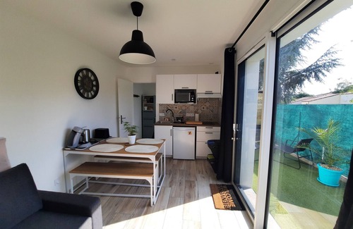Small, very cozy new independent accommodation on one level, not overlooked furnished and equipped which can accommodate ONE PERSON on a mobility lease over the period from 11/11 to 31/03 (the minimum duration required by law is 30 days. It is prohibited to renew a mobility lease).