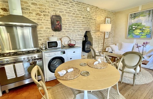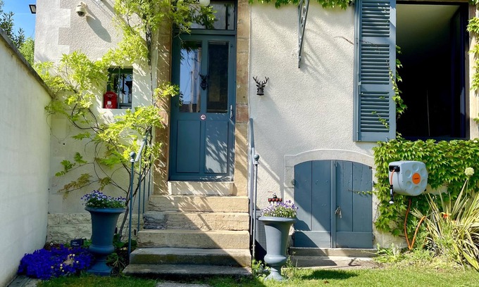 Rare find in Beaune, secluded stone house (55 square meters) with private enclosed garden ( 150 square meters), restored in 2019. You will love the decor of the exposed Burgundy Stone, the collection of artwork, the calm and the comfort. This house has a separate bedroom with king-size bed, quality sheets, ensuite stone bathroom with Bathtub, shower ( fix and flexible), toilet. The large living room with exposed stone walls, bathed in light, opens onto the fully equipped kitchen. The immaculate sofa, filled with cozy cushions and plaids is placed next to the functional and designer wood stove, Danish brand Scan. Firewood provided (1 bundle of logs offered, more at an additional cost on request). The garden is PRIVATE, enclosed by walls (2.20 m high), it is designed as an arboretum where each plant is identified by its name inscribed on a slate plaque. Thyme, Mint, Rosemary, Verbena, fresh herbs for great herbal teas. In spring, bulb flowers will surprise you with their multiple colours. This private outdoor space brings you the much needed oxygen and peacefulness in the city. Relax on the deckchairs, a book in your hand, have lunch in the sun, on the terrace, under the parasol. The location of this house is ideal, quiet, parking is easy and free in the street, grocery store and supermarket 2 minutes walk (grocery store open every day except Monday until 10 p.m., during curfew period delivery of groceries. from 7 p.m. to 10 p.m., more details in my digital guides, updated with the latest news, offered for each reservation). Farmers' market at 7 minutes by foot, restaurants at 10 minutes by foot, walks in the vineyards at 5 minutes on foot. Internet is Fiber-speed of 300 Mb /s. It is a true HAVEN.