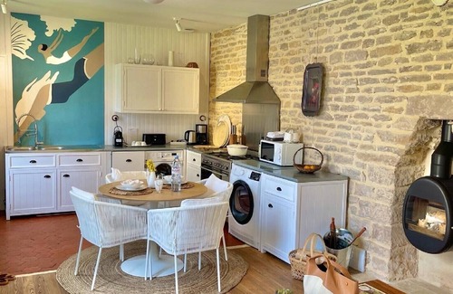 Bright and calm, this charming house was renovated in 2019 with noble materials. It is ideally located in Beaune, between the Hospices de Beaune and the vineyards. Burgundy Creme Stone house with the enclosed, secluded, private garden to offer the tranquility in the heart of the city. Evenings by the fireside, lunch in the flowery garden, an ideal location 7 minutes' walk from the hustle and bustle of restaurants, wine bars, cellars, bike rides and free parking in the street. Design space, king size bed, linen / cotton sheets, equipped kitchen, BBQ, deckchairs. AC daikin with remote.