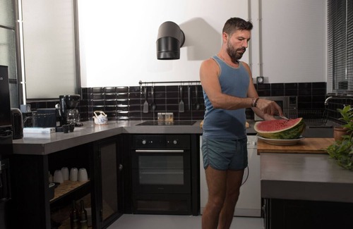 In the main area of the apartment, there is a fully equipped kitchen - fridge-freezer, touch screen cooker, oven, hood, washing machine, microwave, Nespresso coffee machine, filter coffee machine, toaster, kettle and sandwich maker. The apartment has a spacious bathroom area luxuriously designed using steel, glass and geometrical floor tiles. The bathroom includes: a double shower with 2 shower heads, 2 separate WCs, and 2 vanity basins.