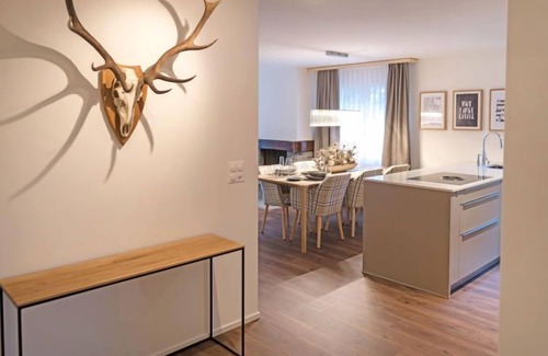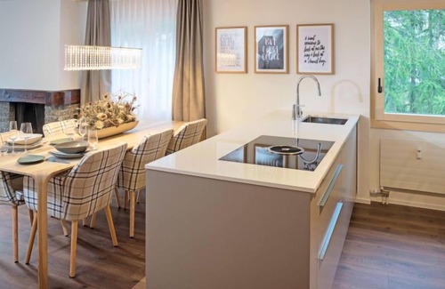 3-room apartment 90 m2 on 3rd floor. Spacious, renovated in 2019, very beautiful and modern furnishings: living/dining room with open-hearth fireplace, dining table and TV. Exit to the balcony, south facing position. 1 double bedroom with 1 double bed (1 x 180 cm, length 200 cm). Exit to the balcony, west facing position. 1 double bedroom with 1 double bed (1 x 180 cm, length 200 cm). Large, open kitchen (oven, dishwasher, 4 induction hot plates, toaster, kettle, microwave, freezer, electric coffee machine, cooking island, fondue Set (cheese)). Shower/WC. Floor heating. Balcony, south facing position and west facing position. Balcony furniture. Beautiful view of the Matterhorn. Facilities: washing machine, hair dryer. Internet (WiFi, free). Please note: non-smokers only.