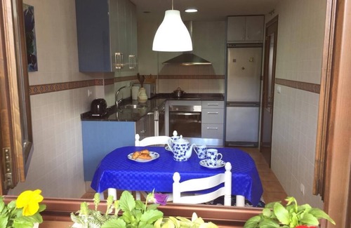 Nice terraced house with fabulous views, in an ideal environment at the foot of Molcalvillo. It has two floors and a beautiful garden. In the first one is the fully equipped and very spacious kitchen, a toilet and the living room with fireplace. in the second, two double bedrooms, one of them with bathroom and two other bedrooms with two beds and the other bathroom. In the garden you will find a barbecue, a wood oven and an area to eat and rest.