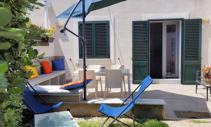 It consists of a bedroom with a double bed, a living area composed of a kitchen and a sitting area with a double sofa bed. There is a bathroom with shower. Outside it is possible to have a small private garden with a terrace furnished with a table for dining / dining in the open air or simply relaxing in the outdoor armchairs. There are barbeque and outdoor shower. The house is equipped with washing machine, satellite TV, air conditioning, hairdryer, iron, toaster and kettle. There are independent natural gas heaters. It is especially recommended for families. The house is equipped with Wi-fi.