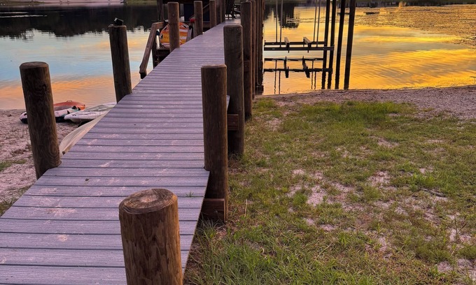 Wake up to the serene sounds of nature and step out onto your private dock overlooking beautiful Cowpen Lake, a private lake, ensuring peace, privacy, and plenty of space to roam and play. Bring your own boat and take advantage of the boat lift at the dock, or enjoy our inclusive fleet of lake toys: a floating pad, stand-up paddleboard, pedal boat, kayak, canoe, beach floats, and toys - everything you need for an amazing day on the water.