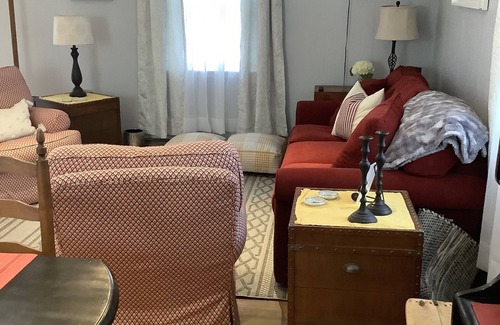 This Monkton, Vermont library cottage was once home to adventures, fairy tales, comics, mysteries and fiction. It has recently been transformed into a welcoming space for travelers to call their home away from home. Very centrally located between Burlington and Middlebury, within walking distance to the new Monkton Town Library and Chocolate Store. Enjoy breathtaking sunrises over Camel's Hump and sunsets over the Adirondacks. Within a short drive, 15 mins. to local restaurants, hikes, fishing, rivers, skiing (Middlebury Snow Bowl, Sugarbush, Mad River Glen, and Bolton Valley), and mountain biking. We are eco-friendly and are mindful of our carbon footprint that we will leave behind.