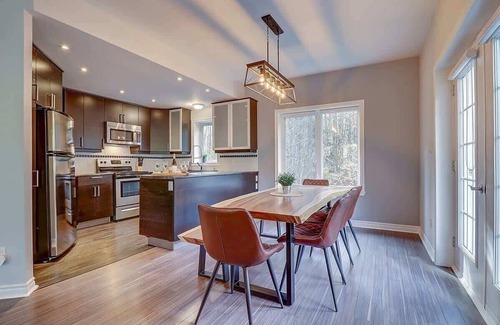 This renovated chalet, bright and cozy, offers 3 bedrooms, 2 bathrooms, and activities like foosball and swings. Ideally located in Orford, it’s 8 minutes from Mont Orford and 5 minutes from Fraser Lake. Set on an 88,000 sq. ft. lot bordering the national park, it features hiking trails, a private hot tub, and intimate outdoor spaces. Perfect for family or friend getaways in a peaceful and rejuvenating environment.