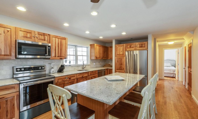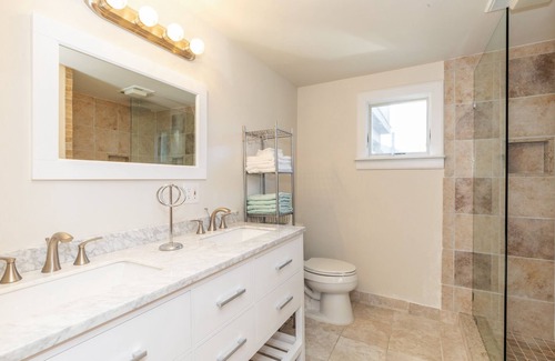 This newly renovated home is perfect for your vacation. Upgrades include gourmet kitchen w granite counters, custom cabinets, stainless steel appliances & hardwood floors throughout. Spacious living room w new furniture & beautiful bay window bringing in natural sunlight. Spacious bedrooms w new furniture & bedding. New bathroom w designer tile, custom vanity & designer fixtures. Great outdoor space includes paved patio, grill, outdoor shower & plenty of parking. Laundry room w new W/D.