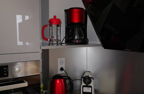 - A kitchen open to the dining room. This very well lit kitchen is very well equipped (Triple induction hobs with worktop, dishwasher, washing machine, combi oven, 160 L fridge with 40L freezer ....). It is also equipped with quality dishes.