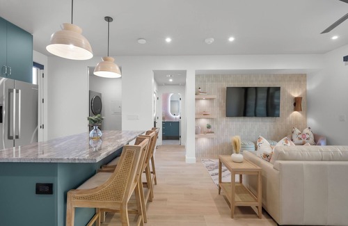 This one-bedroom apartment-style accommodation has everything you need for a cozy and comfortable stay, whether you're a couple or a small family. With a spacious living area featuring a sofa bed, a walk-in tile shower, a full kitchen, a dining table, and a washer/dryer, it's the perfect blend of home-like amenities and vacation-style convenience.