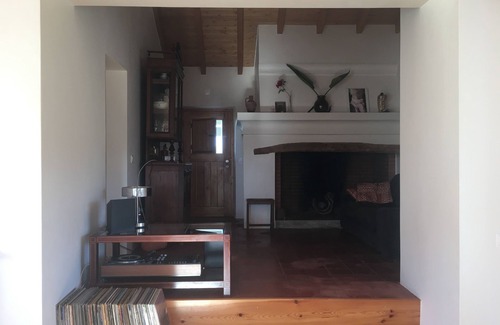 A typical Portuguese country house from Alentejo region, rebuilt in a very sensitive modern way to comfortably welcome 5-6 people in total respect for the original integration in the surrounding landscape. There are 3 separate rooms and a common space connected to a large kitchen. Two of the rooms have double beds and separate entrances/doors to the terrace in front of the house. The third room has double sofa bed to accommodate easily one ore two more persons. One bedroom has its own luxurious bathroom with a shower, a bath tube and an amazing view to the cork trees. Another bedroom has the common bathroom next door, provided with a spacious shower and a large mirror, as well as the view to the cork trees. The modern kitchen, fully equipped, has an old wooden table for 7-8 people along a large window connected to a external patio. The Kitchen provides cooking appliances, induction board, oven, big fridge, dishwashing machine, plates, cups, frying pans and pans for cooking, bowls and cutlery. The kitchen is directly connected to the leaving room with a beautiful fireplace space and a comfortable sofa.