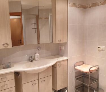 Offering a terrace, Monteurzimmer Röderland - Langzeitaufenthalte für bis zu 6 Personen features accommodations in Prösen. This apartment provides free private parking, private check-in and check-out, and free Wifi. The property offers barbecue facilities and outdoor furniture. Providing a patio with inner courtyard views, this apartment also provides guests with a cable flat-screen TV, a well-equipped kitchen with a dishwasher, an oven, and a microwave, as well as 2 bathrooms with a bath and a hair dryer. The apartment offers bed linen, towels, and laundry service. Guests can also relax in the shared lounge area. Castle Albrechtsburg Meissen is 24 miles from the apartment, while Moritzburg Castle and the Little Pheasant Castle is 25 miles away. Dresden Airport is 33 miles from the property.