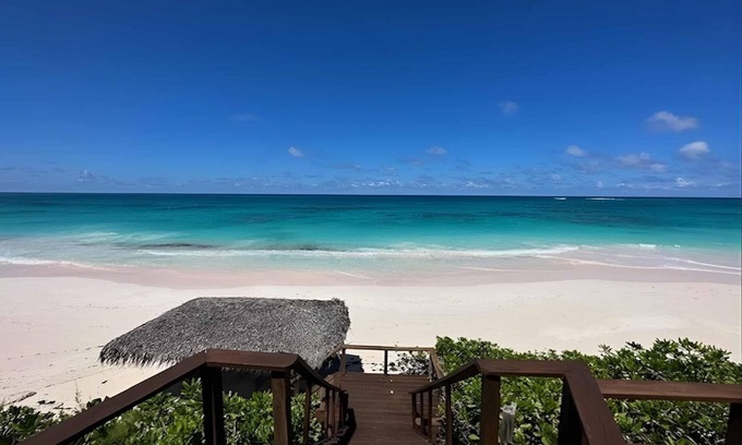 Desert Rose is a cozy, secluded waterfront house on the 5-acre Monticello Estate. It is perched directly over one of the most beautiful beaches on the Island, famous for the unbelievable pink sand and turquoise water.