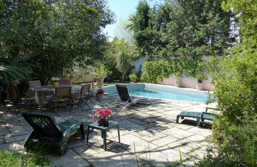 Villa pleasant; large opening on the garden and the pool in which to bask in the sun l, have meals, read under the hackberry trees in a countryside atmosphere rocked by the song of cicadas.