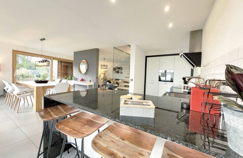 If you are seeking an idyllic wedding accommodation, look no further than the New Modern House (spacious & ecofriendly) with stunning views of the lake and mountains. Nestled in the charming village of Blonay, this property boasts the perfect blend of luxury and comfort for your special day.