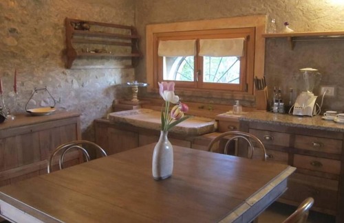 The house is a historic farm house finely restored offering a beautiful apartment on 2 levels. Open Space with kitchen on the ground floor with 1 double bed and 1 single bed as well as room upstairs with a double bed and a single bed.