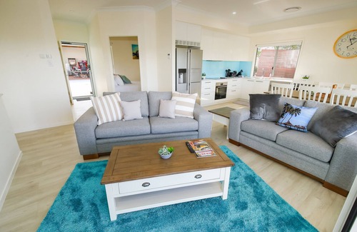 Including all the comforts you would desire such as reverse cycle air-conditioning, coffee maker and appliances, dishwasher, icemaker and cold-water features in the fridge, a 9kg washer and 6kg dryer.