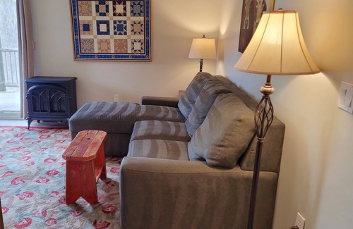 Enjoy a relaxing ground floor 1 bdm apartment (a legal, licensed nightly rental with a current Okanogan County health permit as required by law), with Queen bed and cozy Queen sleeper in Winthrop. Beautiful views up and down the Chewuch River. A Butler’s pantry allows basic cooking. Easy walk to downtown with restaurants, microbrewery and ski trails.