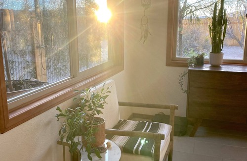 This is my personal home that I am opening to fellow adventurer's and friends. It has been true medicine to be in the stillness of the desert with expansive views watching inspiring sunsets and sunrises here. I’ve set the lighting and dinning experience to be optimal for relaxing and enjoying dinners with friends and family. There is also a full work desk area with extra monitor and high speed internet. This property is perfect for a getaway, wellness retreat, or remote work. I hope you enjoy the space and if you are looking for some r&r this is the spot.