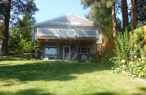 Close your eyes and imagine spending nights studying the moon and stars while roasting s'mores in front of a beach side fire pit. Think about relaxing with family and friends while playing horseshoes, ladder golf, or reading a good book. Dream of spending an afternoon hanging out in a deck chair on the beautiful pebble beach while watching sailboats race back and forth in the bay. Make plans to rent a boat to fish the trout-rich waters, or simply take a cruise around Wild horse Island. Think about jet skiing, water skiing, kayaking, or just playing in the sun kissed water of the largest, natural freshwater lake west of the Mississippi. Spend the day hiking, picking cherries or huckleberries, or antique hunting before dining in one of the fabulous restaurants around the lake. Done daydreaming? Make it a reality! We rent this lovely home from Friday to Friday, June thru September. Book your stay now!