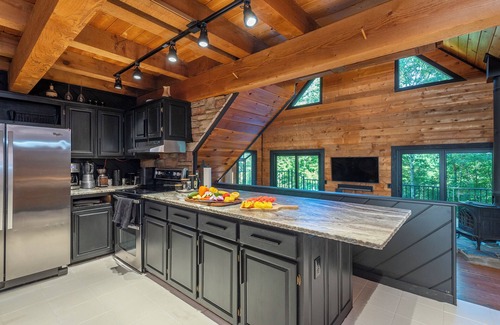 Dreaming of the perfect mountain getaway? Kick back in this incredibly stylish log cabin style home nestled in the mountains with Cedar Hot Tub & Outdoor Kitchen. Perfect for a couples getaway or family retreat. Sleeps up to 12-4 bedroom + loft. Just 20 mins to Asheville Airport, 10 Mins to Hendersonville & 15 mins to the Pisgah Forest & Brevard. With 100’s of waterfalls & hiking trails just mins away, you’ll truly get your taste of all that the beautiful Blue Ridge Mountain Region has to offer.