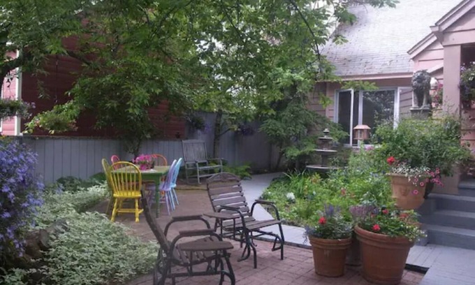 This comfortable, inviting suite is reminiscent of a spa retreat with a new King-Size bed. Enter through a private entrance. Light and bright with lovely amenities. Soft sheets, oodles of pillows, kitchenette with coffee maker, toaster, microwave, mini-refrigerator, glassware, etc. The bathroom offers an extra deep tub/shower (may be difficult for those with mobility issues), bath products for your use, and bamboo/organic towels.