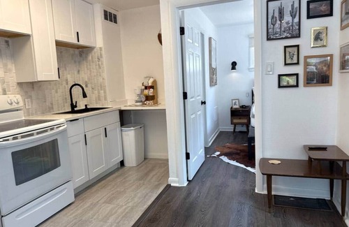 Welcome to Moonlit Mesa! A stylish one-bed, one-bath Southwestern retreat with cozy charm and modern flair. Perfect for solo travelers or couples seeking a peaceful escape. Come unwind at this cozy bungalow nestled under the trees. Need more space? Check out our listing to rent both sides of the duplex, both Moonlit Mesa and Sunset Sanctuary Bungalow! Rules say no smoking but 420/smoking is allowed outside. Feel free to use the patio furniture on the patio.