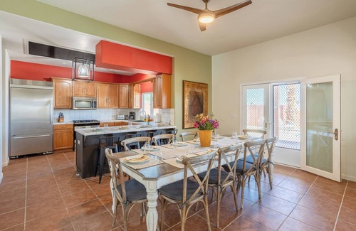 Moonlit Retreat is a 6-bedroom, 3.5-bathroom pool home located near the Santa Rosa Mountain range and Western Sonoran Desert, across from Anza-Borrego State Park. The home is newly renovated and furnished with beautiful views. Centrally located, just over a mile from downtown, with restaurants and shops and a short walk to Coyote Bar and Steakhouse, Moonlit Retreat is a perfect home base for exploring this International Dark Sky community whether you're hiking, biking, art seeking or stargazing.