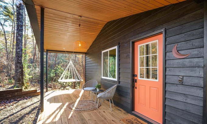 Relax & recharge at Moonrise Retreat, a secluded 1BR+1BA cabin nestled in the peaceful North GA mountains, just 8 minutes from downtown Ellijay and 15 minutes from downtown Blue Ridge. Inside, enjoy the open-concept space, play games or your favorite tunes on the record player. Outside, unwind in the 4-person hot tub, warm up by the firepit, grill some BBQ, or explore our 2 acres of land that come alive with string lights at night.