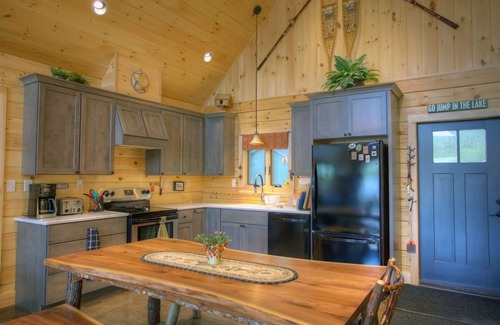 Visit the Adirondacks and stay at the lovely Moons and Loons Cabin on Fern Lake for a memorable vacation. This cozy, immaculate and newly built cabin has an inviting open floor plan with in-floor radiant heat, a full kitchen, dining and the living room with queen size sleeper sofa. The TV has cable as well as Amazon Prime and there are a selection of board games. There are 3 bedrooms, 1.5 baths and visitors are welcomed to the front door with lush lawns and beautiful landscaping.