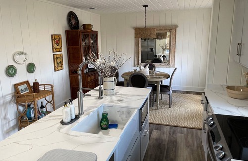 This Farmhouse was completely renovated in 2023 with new HVAC, kitchen appliances, bathroom fixtures, etc. Covered front porch for watching the sun rise and enjoying the afternoon / evening breeze! The house is approximately 2 miles from the SHINER BREWERY and guests have access to the 100 acre property for fishing and other outdoor activities. This 2 bedroom 1 bath comfortably sleeps 5 persons utilizing the pullout couch/bed in the den.