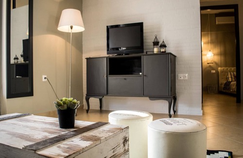 A spacious apartment in the heart of the city. The central traditional door of the building leads you to a stone-built stoa where you can find it in the courtyard and the entrance of the house.