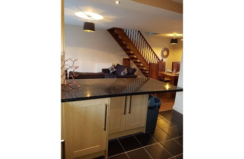 Gorgeous house, well equipped with open plan living.The property has a lovely south facing lawned garden where you can relax.Kitchen is well equipped which includes an fridge freezer, washer and a wine cooler. The house has easy access to M1/M69 motorway. Dining is awesome by the use of a large 6 seater hard wood table and also the use of the breakfast bar. As the house is open plan you will find it a lovely friendly feel positively adding enjoyment to your stay.